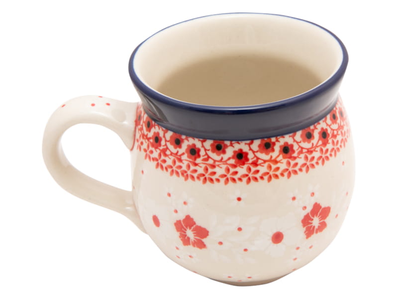 Bunzlauer Keramik - HANDGEFERTIGT. Muster mit Blumen in gedeckten, zarten Farben - rot und weiß. Kobaltblauer (dunkelblauer) Rand.