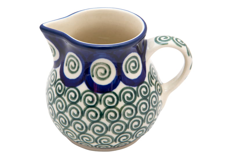 Original Bunzlauer Keramik. CLASSIC Muster - VINTAGE-Stil. Grüne Spiralen. Kobaltblauer (dunkelblauer) Rand.