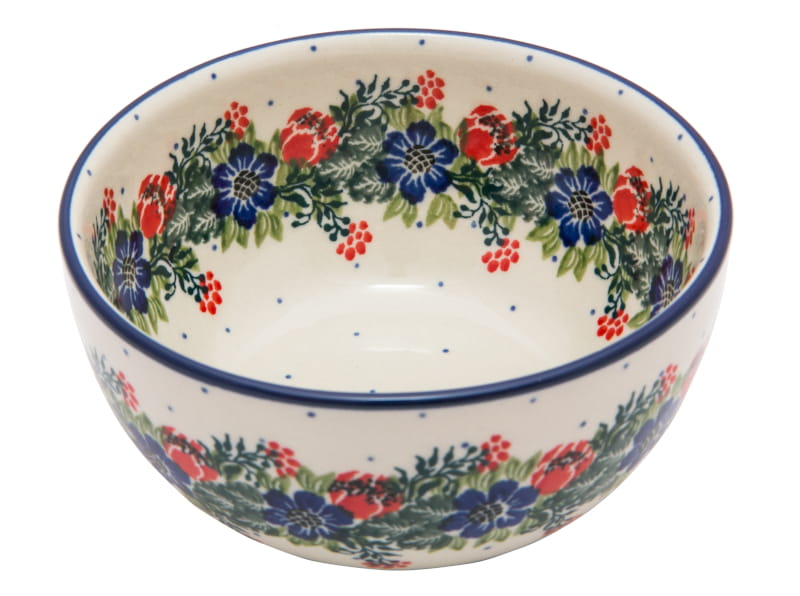BLUMENmuster in rot und marineblau. Kobaltblauer (dunkelblauer) Rand. Original Bunzlauer Keramik.