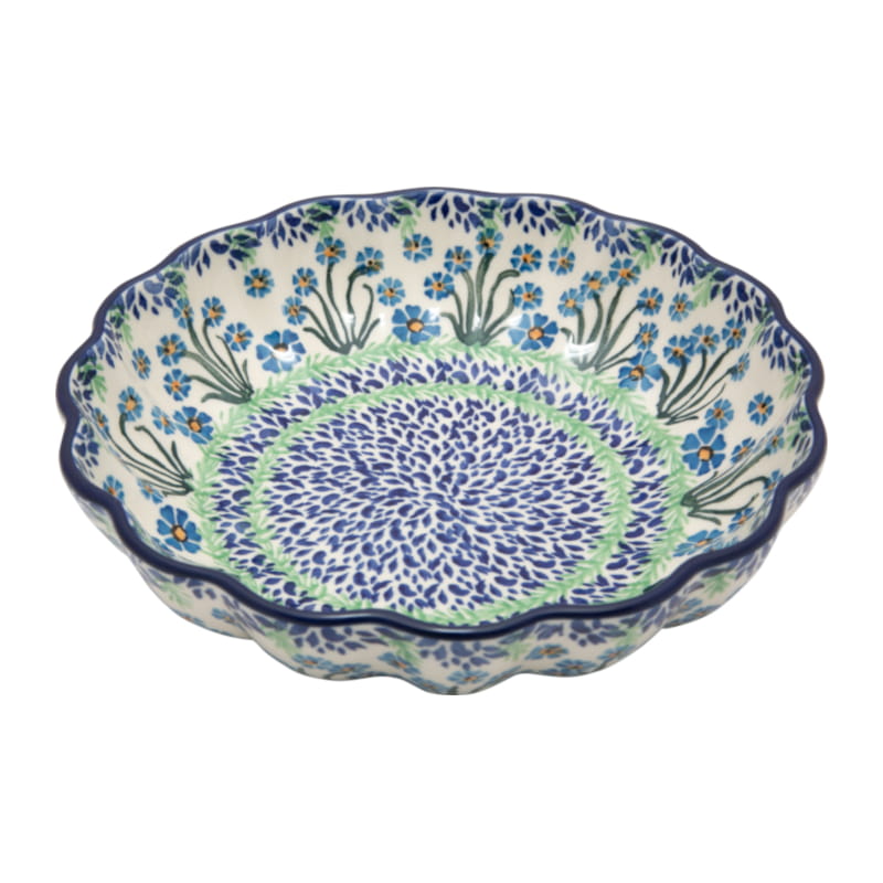 Original Bunzlauer Keramik. BLUMENmuster in blau, gelb, marineblau und grün. Kobaltblauer (dunkelblauer) Rand.