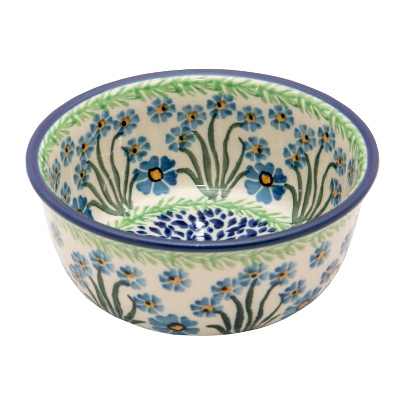 Original Bunzlauer Keramik. BLUMENmuster in blau, gelb, marineblau und grün. Kobaltblauer (dunkelblauer) Rand.