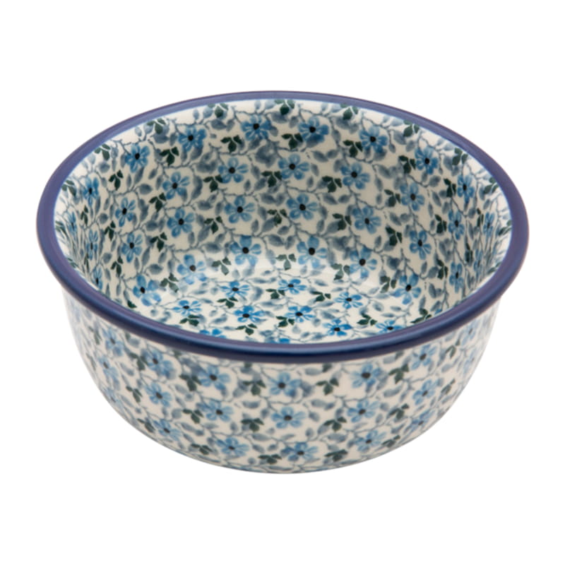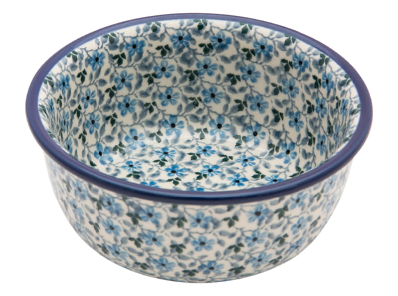 Original Bunzlauer Keramik. Blumenmuster in blau - BLAU WIESE. Kobaltblauer (dunkelblauer) Rand.