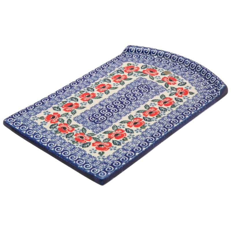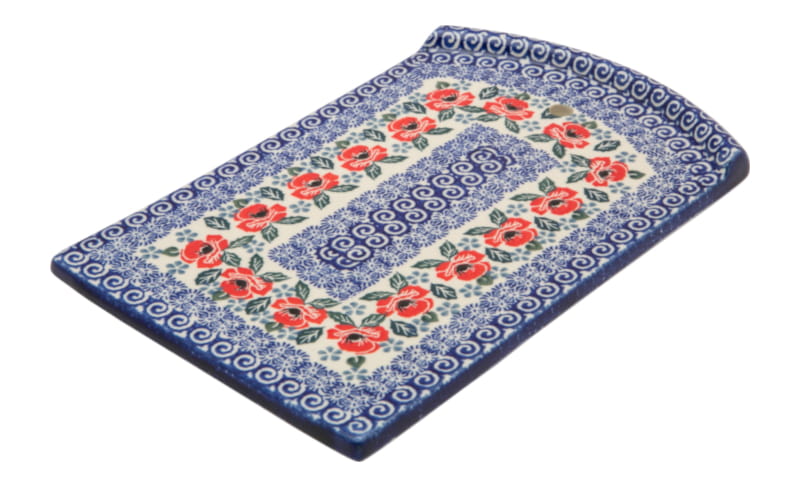 Original Bunzlauer Keramik. Blumenmuster in rot. Weißer Rand (Die natürliche Farbe des Brennprozesses).