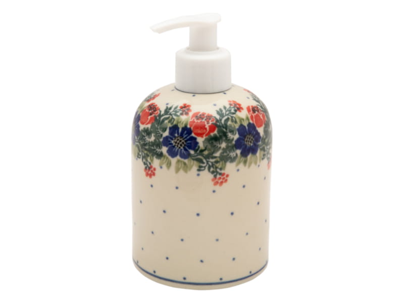 Original Bunzlauer Keramik. BLUMENmuster in rot und marineblau. Weißer Rand (Die natürliche Farbe des Brennprozesses).