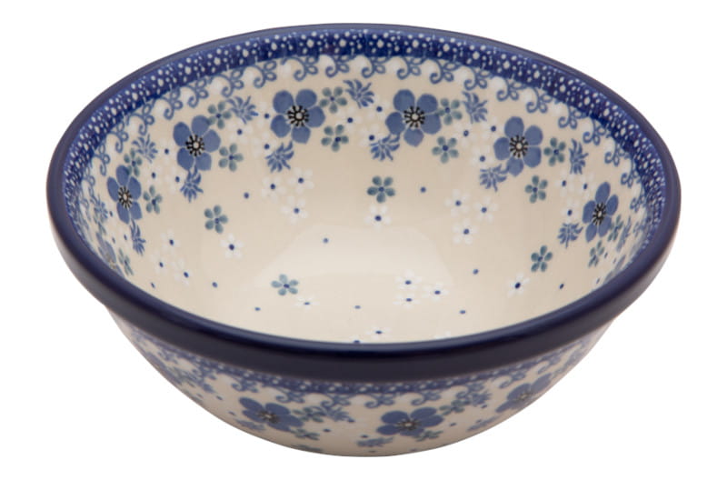 Original Bunzlauer Keramik. BLUMENmuster in Marineblau und Weiß. Kobaltblauer (dunkelblauer) Rand.