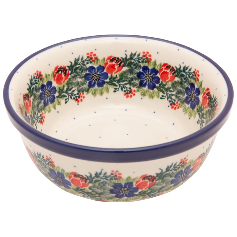Original Bunzlauer Keramik. BLUMENmuster in rot und marineblau. Kobaltblauer (dunkelblauer) Rand.