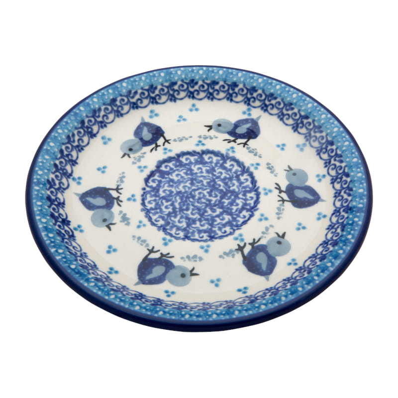 Muster mit Hühnern. Huhn in Marineblau und Grau. Kobaltblauer (dunkelblauer) Rand. Original Bunzlauer Keramik.