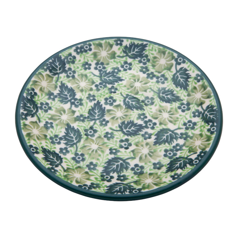 Original Bunzlauer Keramik. PFLANZENmuster in grüner Farbe. Dunkelgrüner Rand.