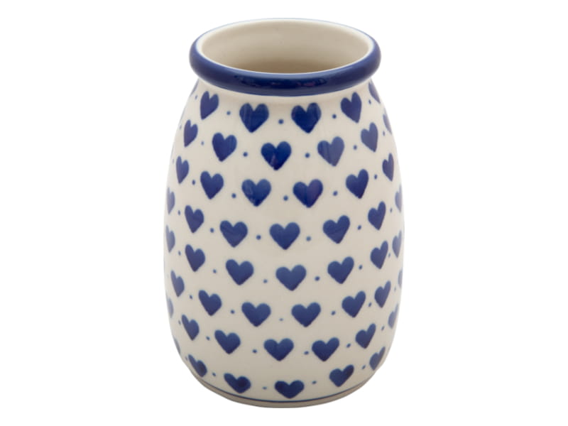 Original Bunzlauer Keramik. Marineblaue Herzen auf weißen Hintergrund. Kobaltblauer (dunkelblauer) Rand.