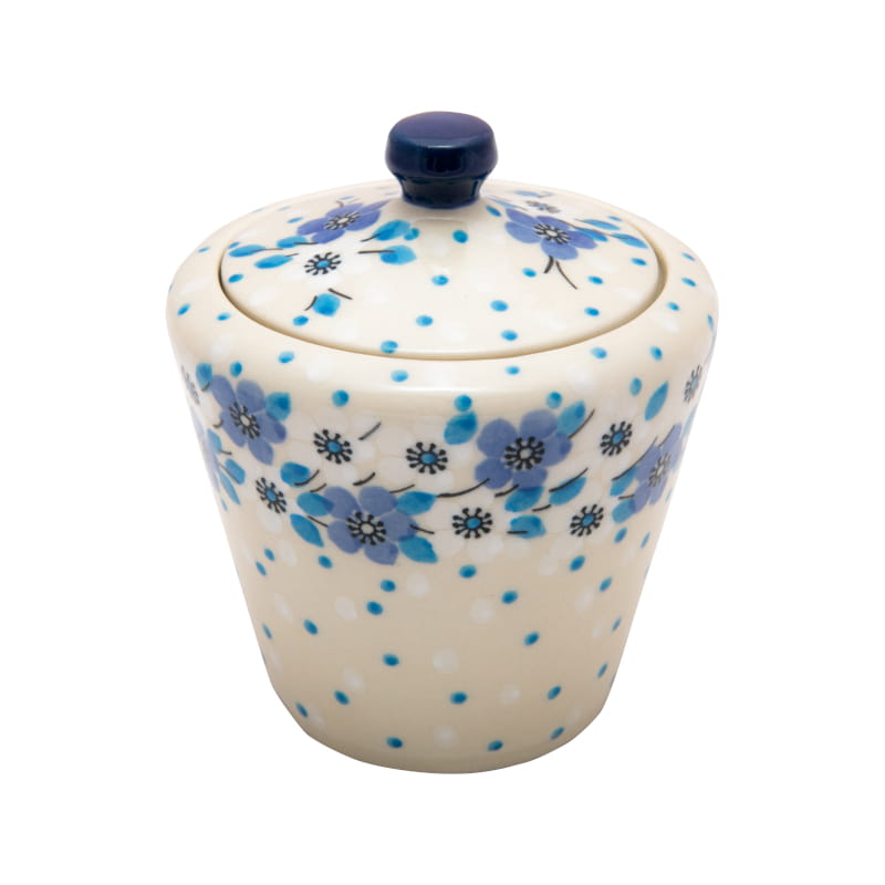 Original Bunzlauer Keramik. Blumenmuster in blau - BLAU WIESE. Kobaltblauer (dunkelblauer) Rand.