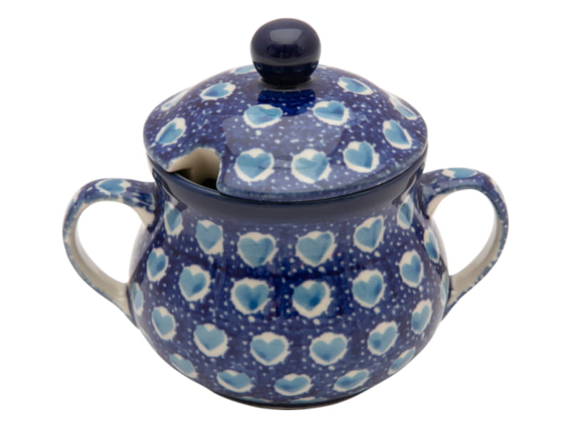 Original Bunzlauer Keramik. Muster VINTAGE - zarte Herzen in Marineblau.