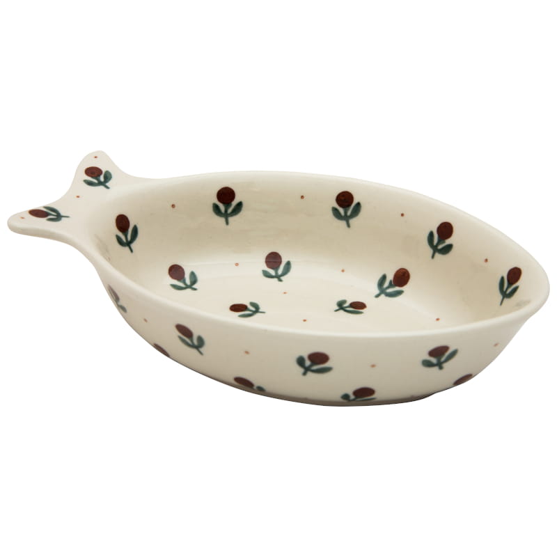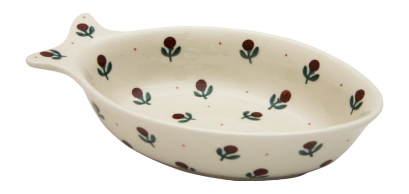 Plant pattern in brown and green colors. Boleslawiec pottery - handpainted.