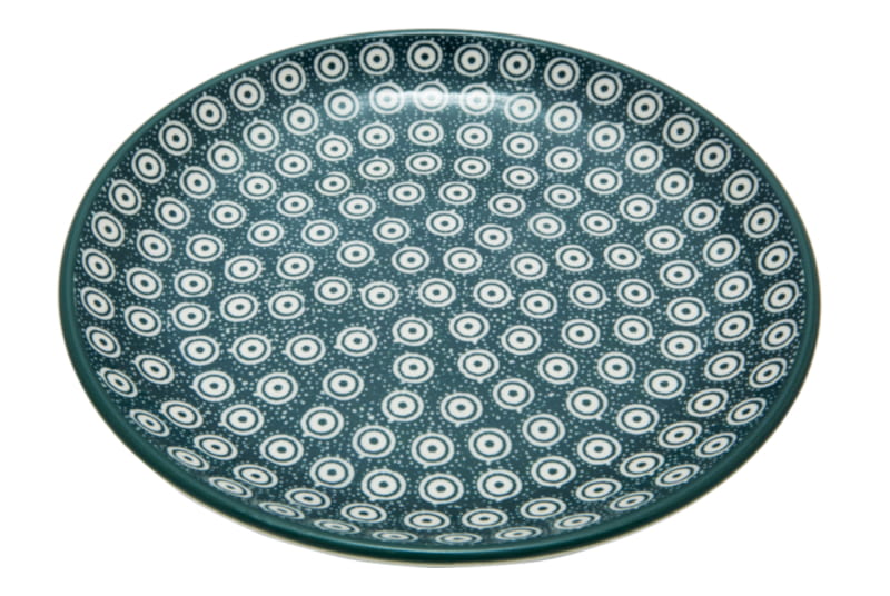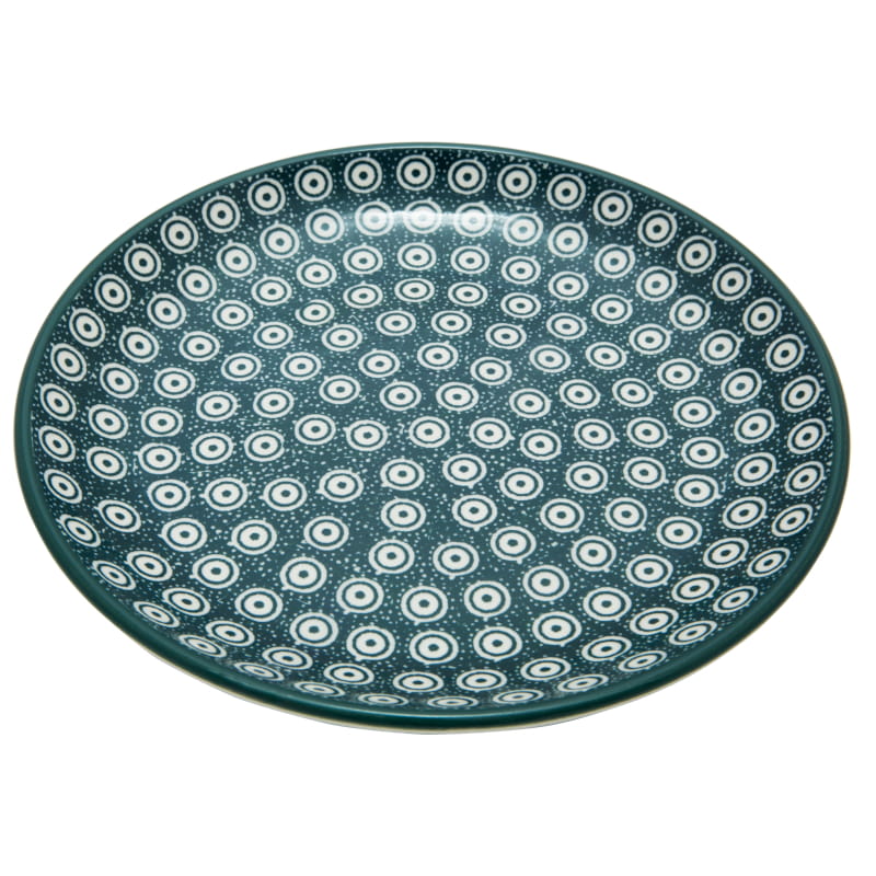 Boleslawiec pottery - handpainted. Classic pattern in green. Border in bottle green.