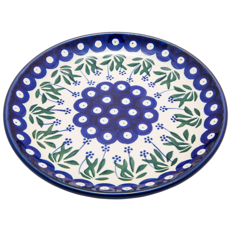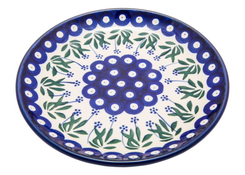 Boleslawiec pottery - handpainted. Classic pattern with plant motifs. Border in navy blue.