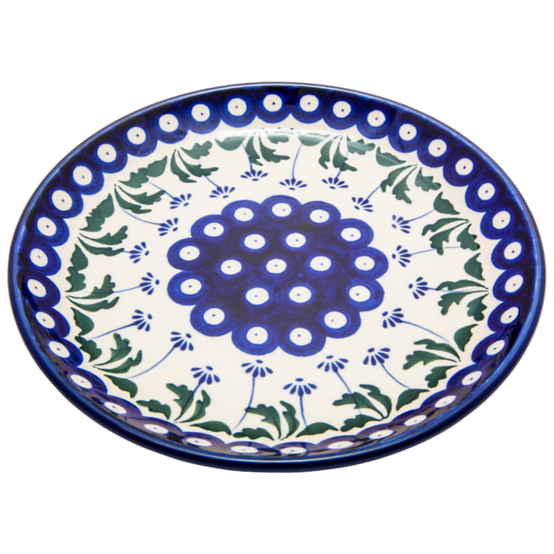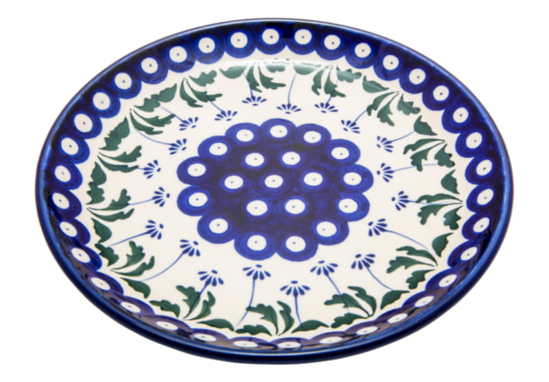 Boleslawiec pottery - handpainted. Classic pattern with plant motifs. Border in navy blue.