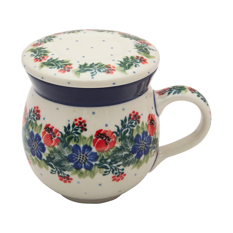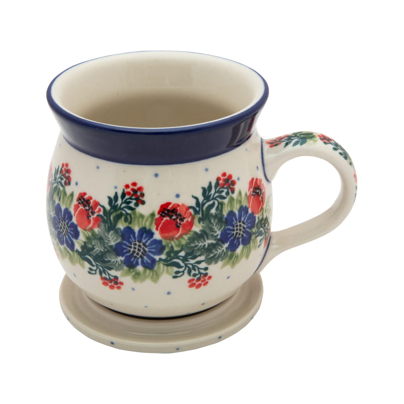 Boleslawiec pottery - handpainted. Floral pattern in red and navy blue.