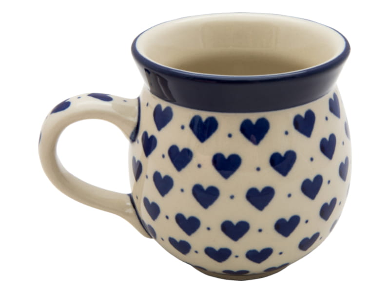 Boleslawiec pottery - handpainted. Classic pattern in a vintage style. Navy blue hearts on a white background. Border in navy blue.