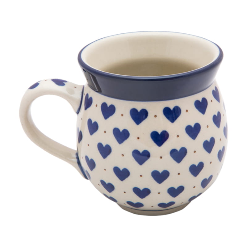 Boleslawiec pottery - handpainted. Classic pattern HEART - navy blue hearts and fine red dots. Border in navy blue.