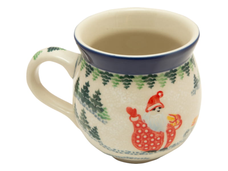 UNIQUE Christmas pattern. Santa Claus and houses against the background of a winter landscape. Border in navy blue. Boleslawiec pottery - handpainted.