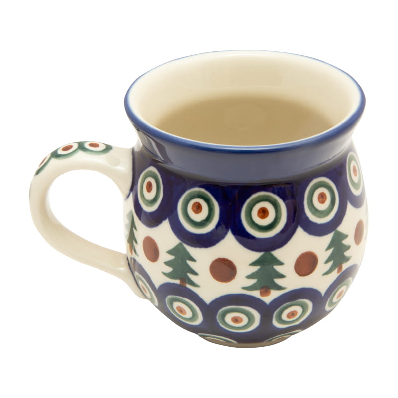 CLASSIC pattern in the VINTAGE style in the colors of blue, green and brown with a green Christmas tree. Border in navy blue. Boleslawiec pottery - handpainted.