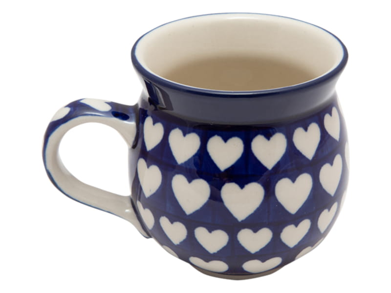 Classic pattern in a vintage style. White hearts on a navy blue background. Border in navy blue. Boleslawiec pottery - handpainted.