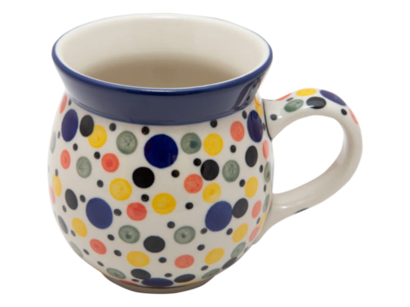 Geometric pattern in VINTAGE style. Multi-colored dots. Border in navy blue. Boleslawiec pottery - handpainted.