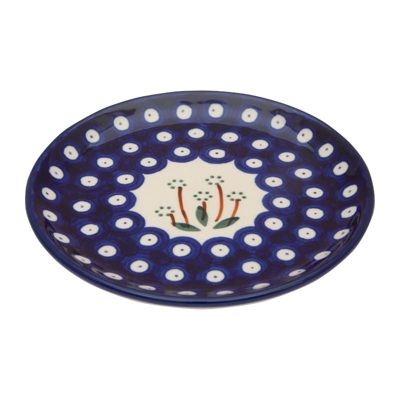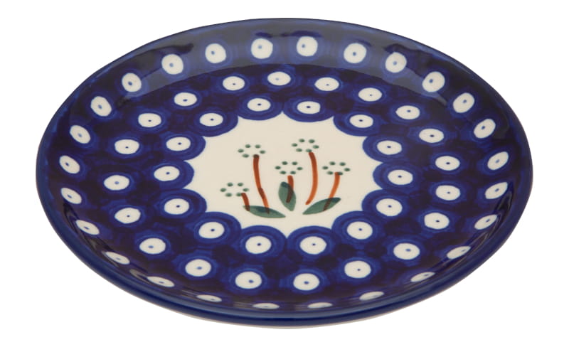 Boleslawiec pottery - handpainted. Classic pattern with plant motifs in navy blue and green. Border in navy blue.