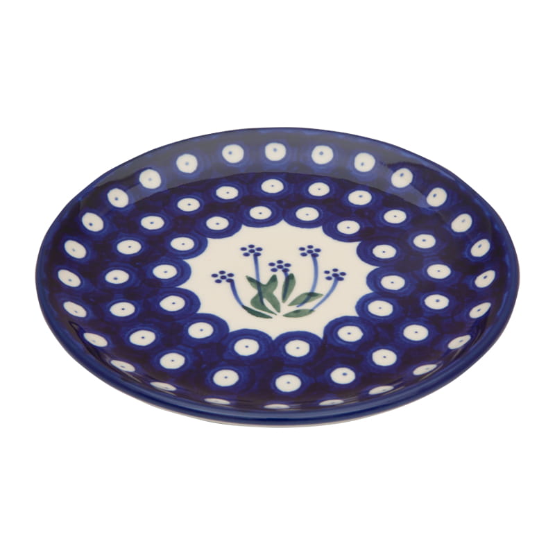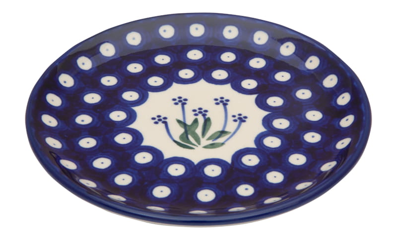 Boleslawiec pottery - handpainted. Classic pattern with plant motifs. Border in navy blue.