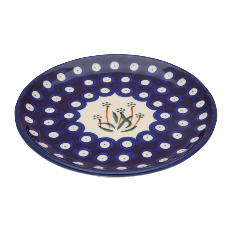 Boleslawiec pottery - handpainted. Classic pattern with plant motifs. Border in navy blue.