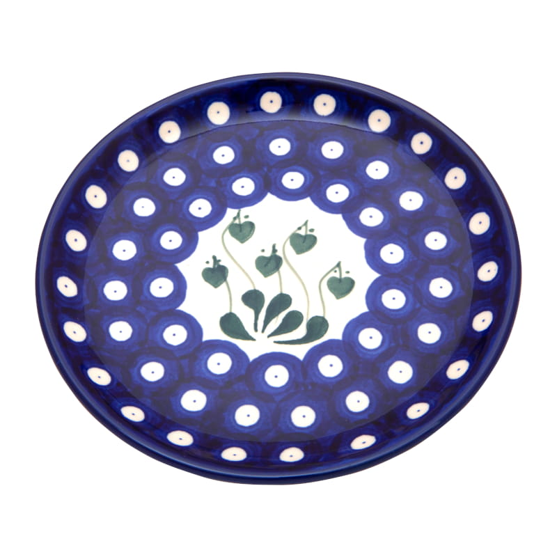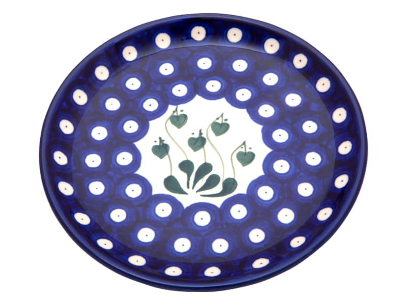 Boleslawiec pottery - handpainted. Classic pattern with plant motifs. Border in navy blue.
