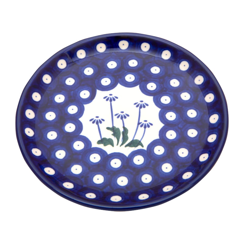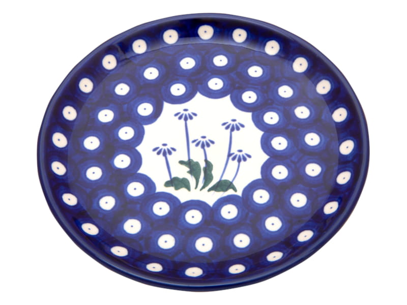 Boleslawiec pottery - handpainted. Classic pattern with plant motifs. Border in navy blue.