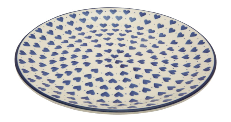 Boleslawiec pottery - handpainted. Classic pattern in a vintage style. Navy blue hearts on a white background. The edge in navy blue.