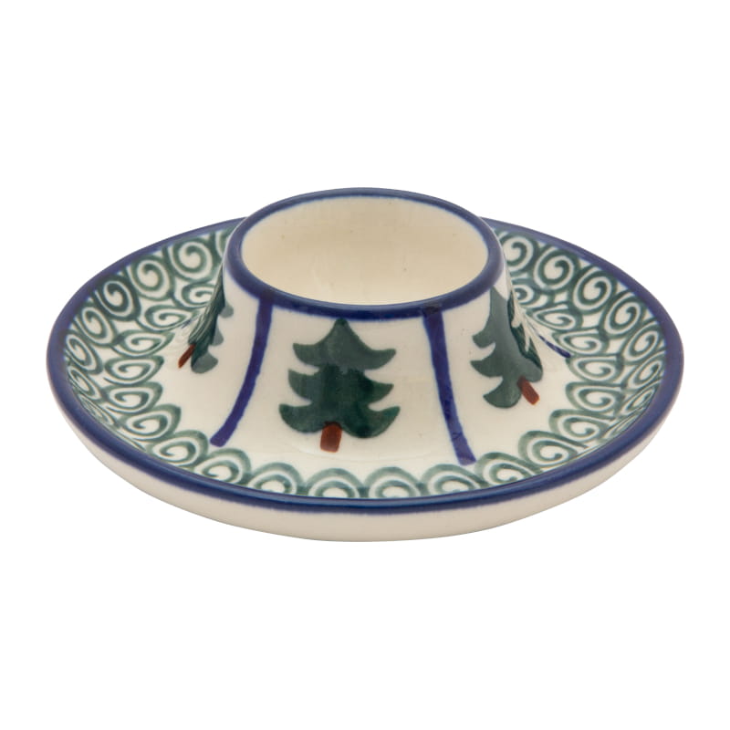 Boleslawiec pottery - handpainted. Classic pattern in a vintage style - green spirals with navy blue motifs and green Christmas trees. Border in navy blue.