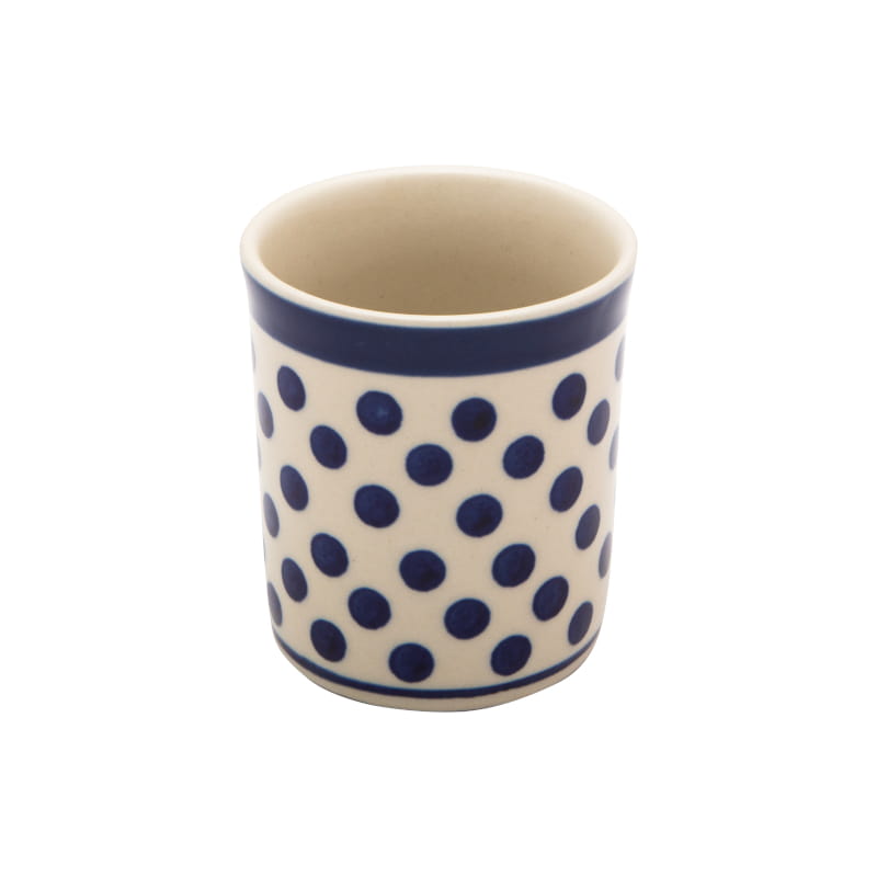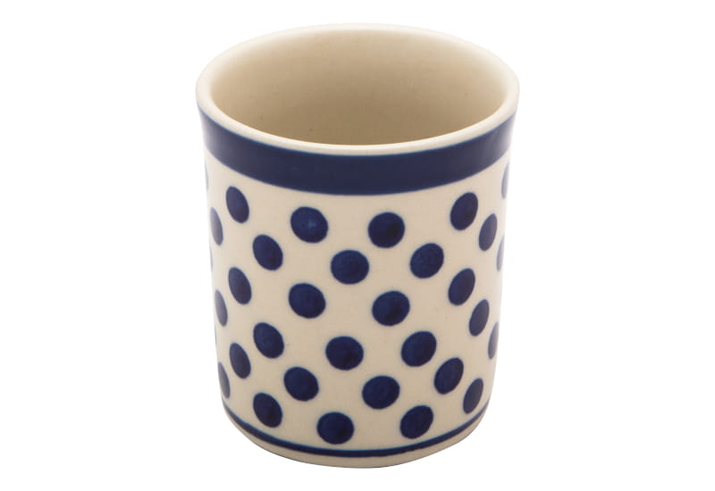 Boleslawiec pottery - handpainted. Classic pattern in a vintage style - navy blue dots on a white background. The edge in navy blue.