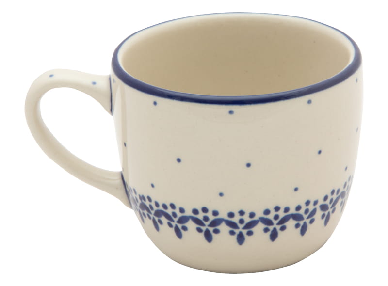 Vintage style pattern - fine dots in navy blue. Border in navy blue. Boleslawiec pottery - handpainted.