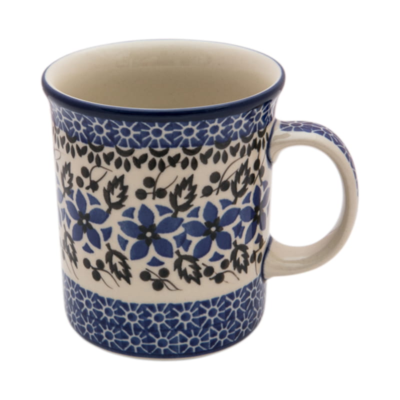 Boleslawiec pottery - handpainted. Floral pattern in navy blue and black. Border in navy blue.