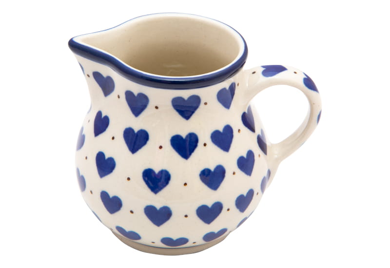 Boleslawiec pottery - handpainted. Classic pattern - navy blue hearts and fine red dots. The edge in navy blue.