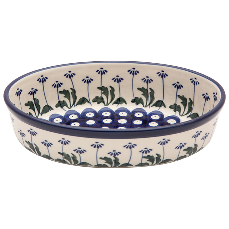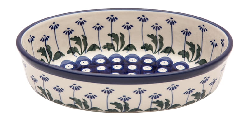 Boleslawiec pottery - handpainted. Classic pattern with plant motifs in navy blue and green. Border in navy blue.