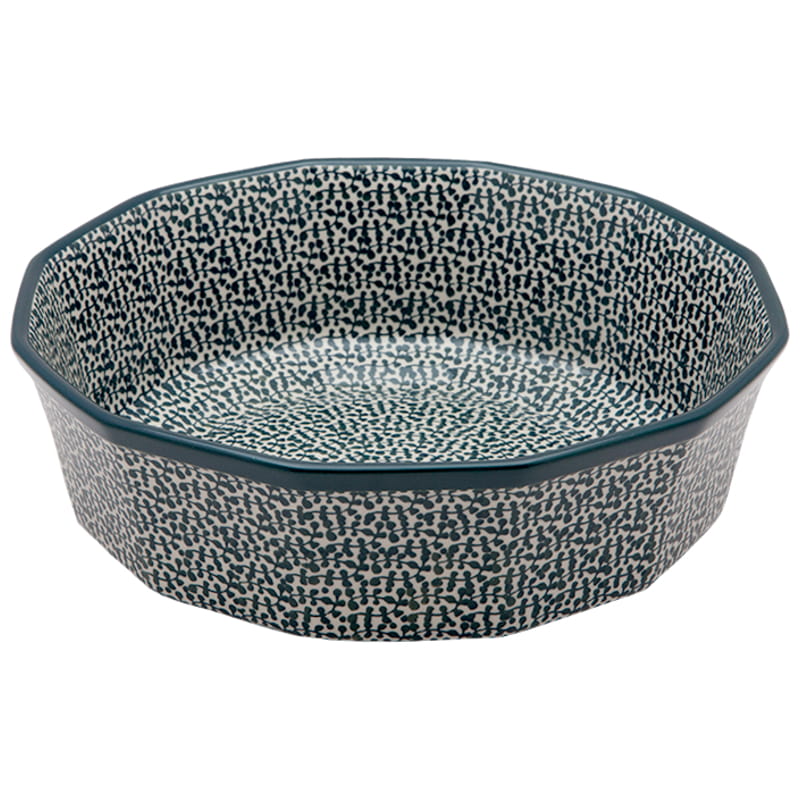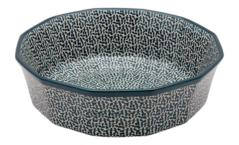 Boleslawiec pottery - handpainted. Oriental pattern in bottle green. Border in bottle green.