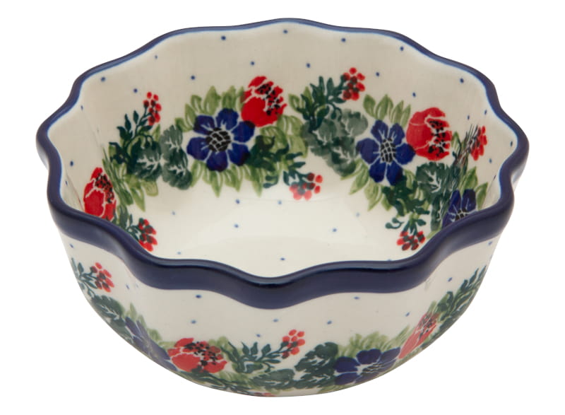 Floral pattern in red and navy blue. Boleslawiec pottery - handpainted.