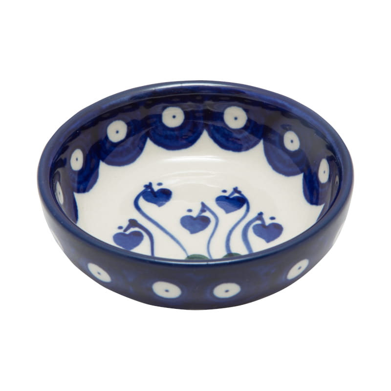 Boleslawiec pottery - handpainted. Classic pattern with plant motifs in navy blue and green. Border in navy blue.