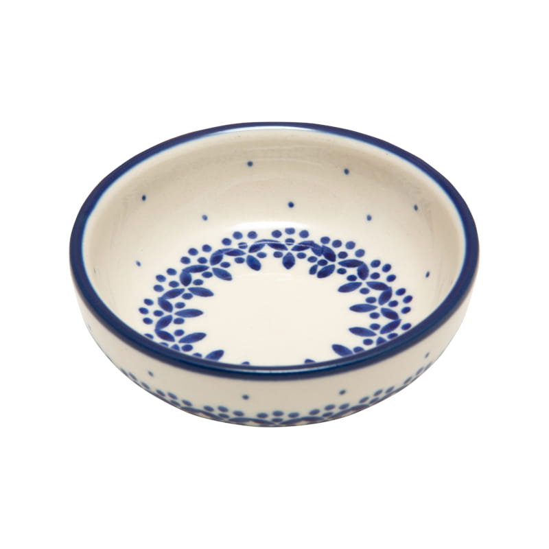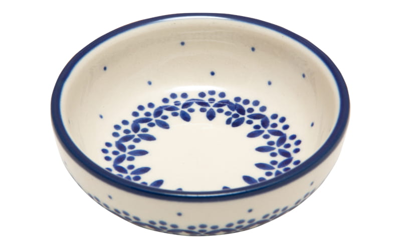 Boleslawiec pottery - handpainted. Vintage style pattern - fine dots in navy blue. Border in navy blue.