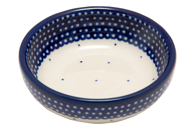 Boleslawiec pottery - handpainted. Unique pattern in navy blue. Border in navy blue.