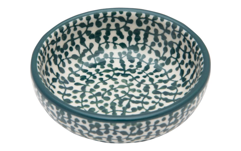 Boleslawiec pottery - handpainted. Oriental pattern in bottle green. Border in bottle green.