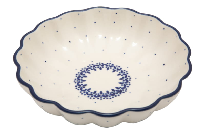 Boleslawiec pottery - handpainted. Vintage style pattern - fine dots in navy blue. Border in navy blue.
