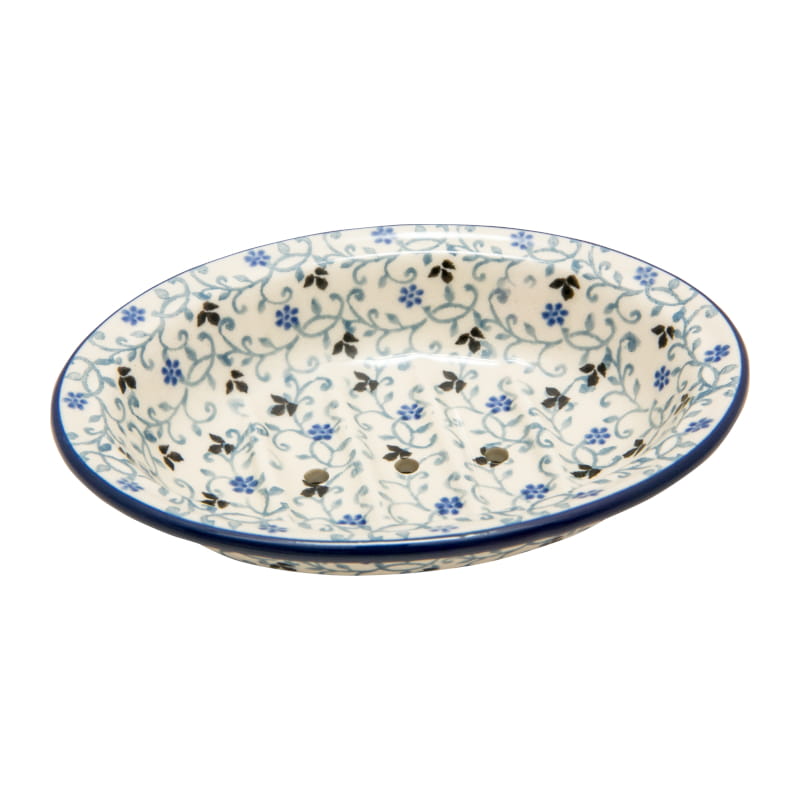 Maselniczka na dużą kostkę masła 200 lub 250 gram. Ceramika Bolesławiec - HANDMADE. Wzór z motywem roślinnym i kwiatowym z dominującym kolorem granatowym. Wykończenie obrzeża w kolorze granatowym.