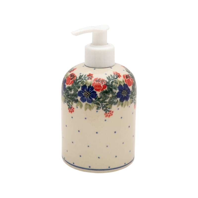 Boleslawiec pottery - handpainted. Floral pattern in red and navy blue.