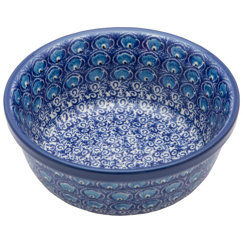 Boleslawiec pottery - handpainted. Classic pattern - fine design and evil eyes in navy blue. Border in navy blue.