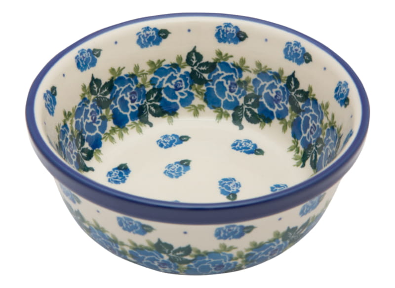 Boleslawiec pottery - handpainted. FLOWER pattern in blue. Border in navy blue.