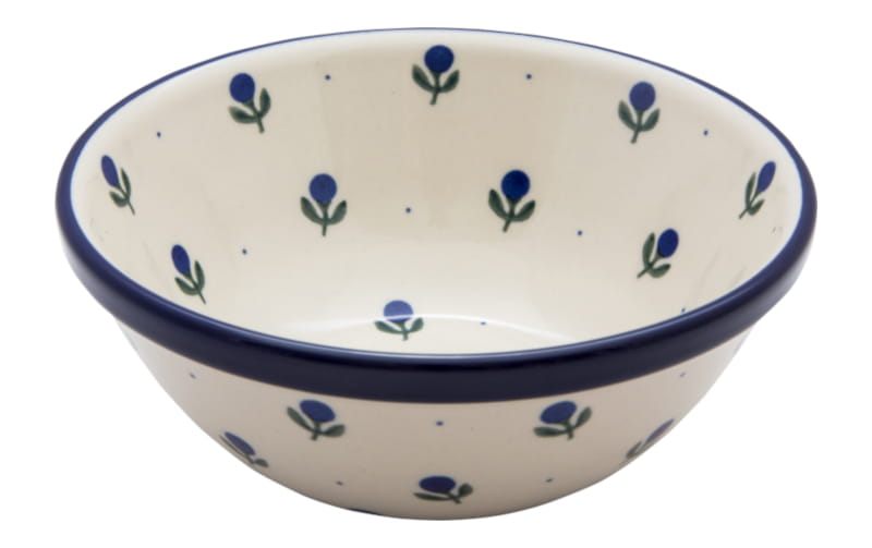 Boleslawiec pottery - handpainted. Classic pattern in navy blue and green. Border in navy blue.